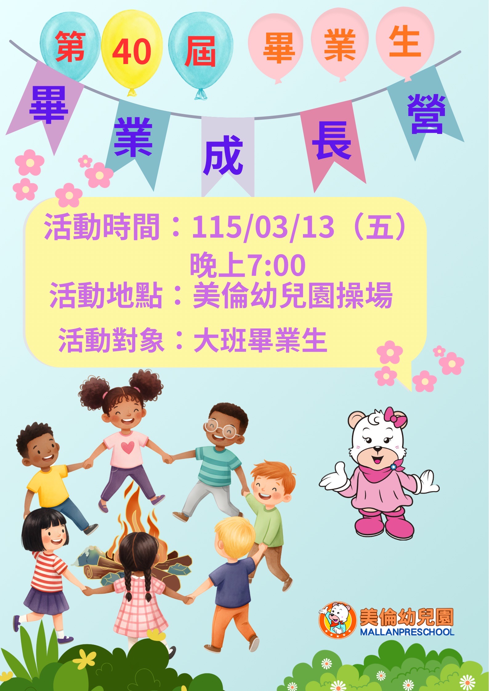 我們於115年3月13日(五)晚上舉辦-美倫營火晚會暨夜宿成長營活動-